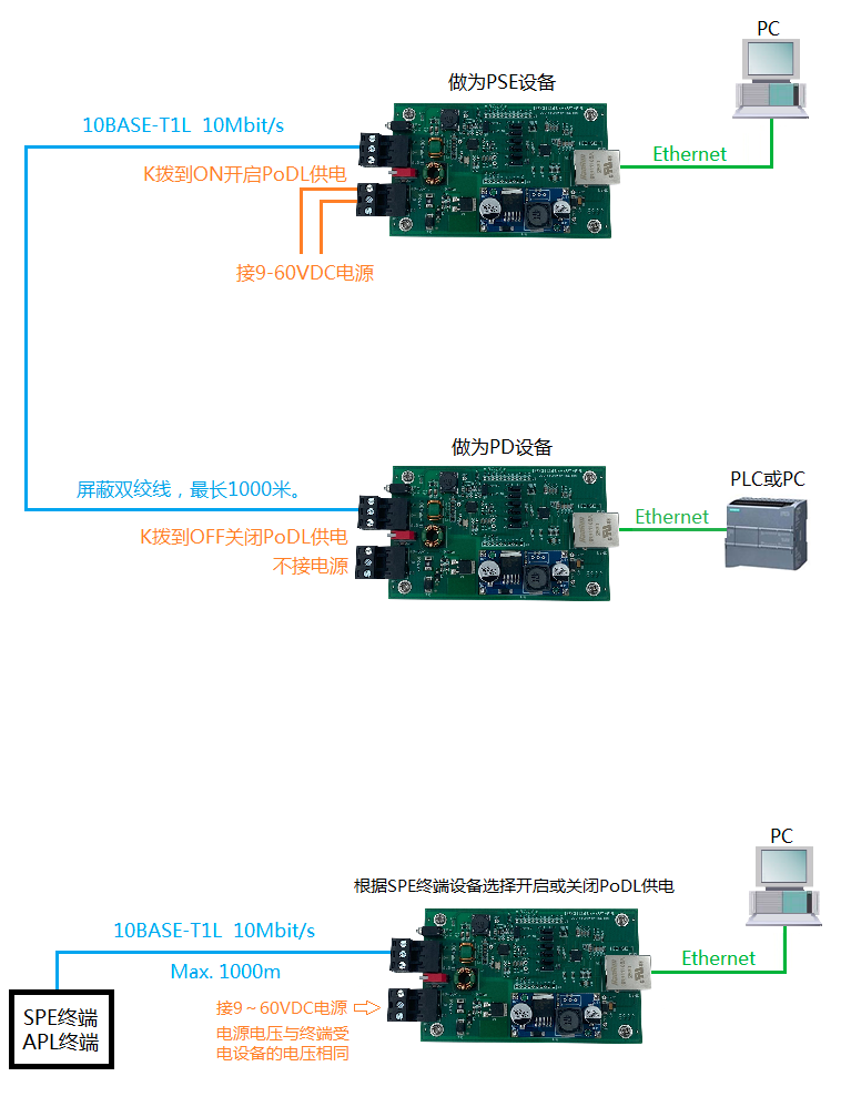 傳輸介質(zhì) | SPE單對雙絞線電纜,26AWG(0.14mm2)~ 14AWG(2mm2)。 |