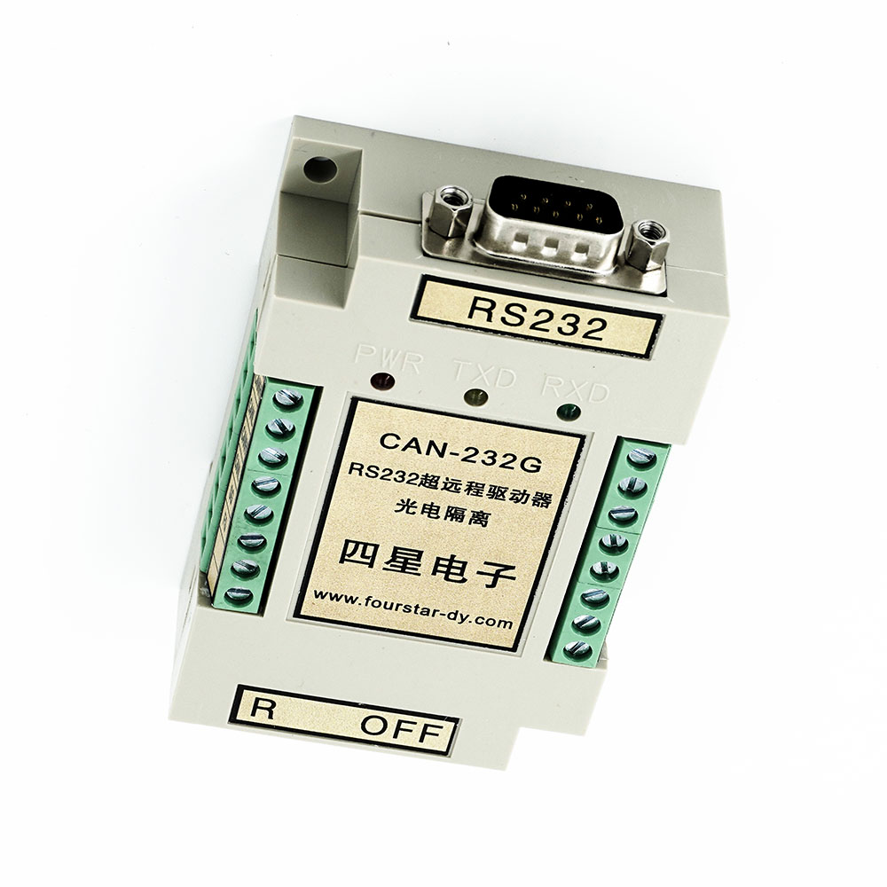 RS232光隔離超遠(yuǎn)程驅(qū)動(dòng)器,采用不改變RS232協(xié)議(軟件)的CAN總線驅(qū)動(dòng)器,只需二根線即可將RS232通訊距離延長(zhǎng)到10km(4800bps時(shí))、5km(9600bps時(shí)),支持110個(gè)RS232節(jié)點(diǎn)組網(wǎng),解決了野外使用中繼器加電源的麻煩。外接5V電源。外形為導(dǎo)軌安裝的工業(yè)結(jié)構(gòu),帶有指示燈。
