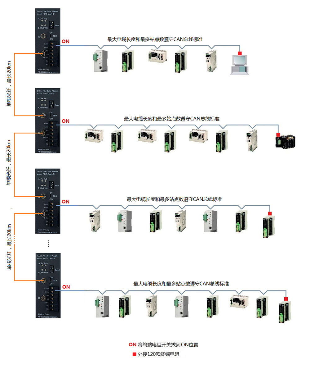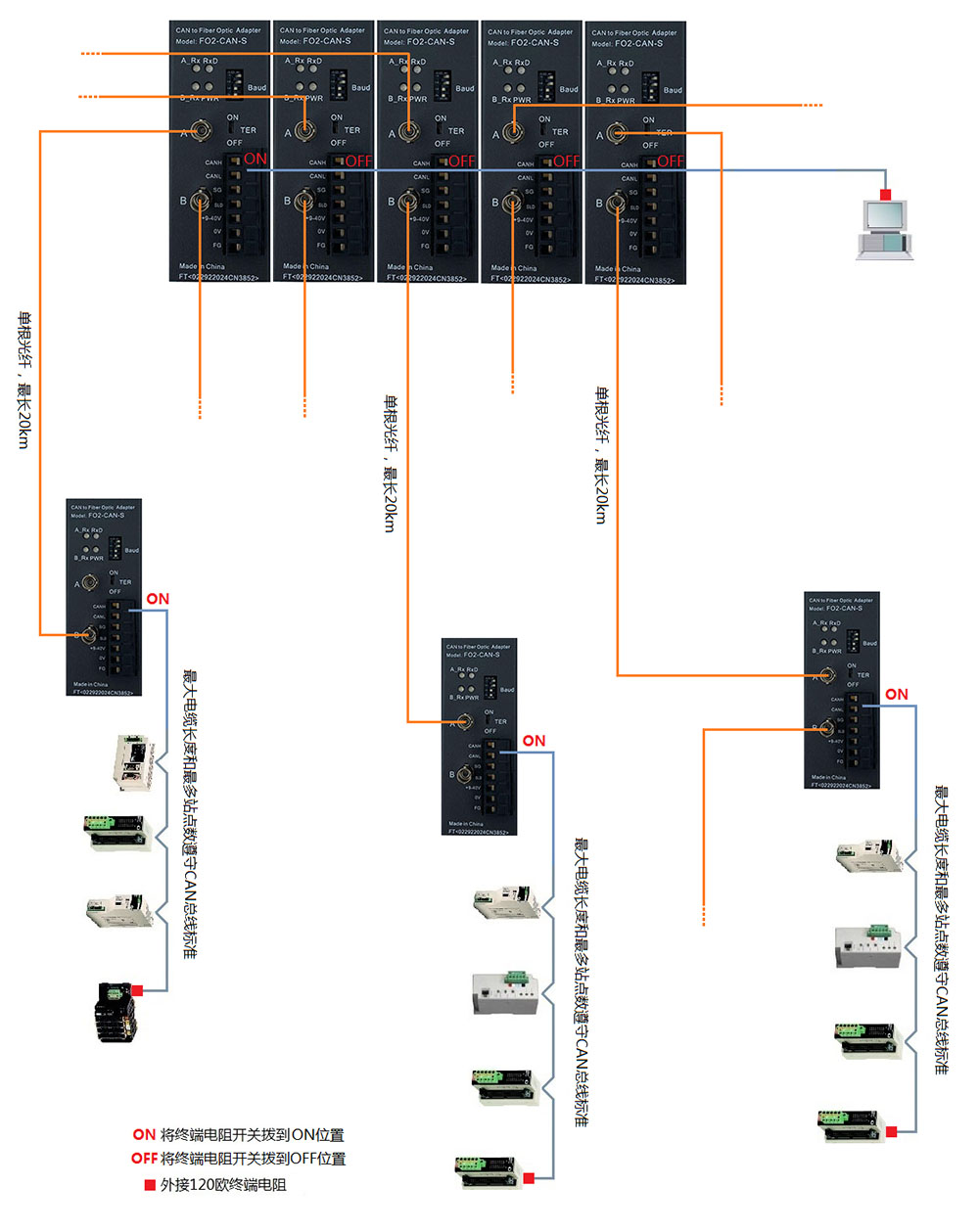 CAN總線轉(zhuǎn)光纖適配器,雙光口,單模單纖。