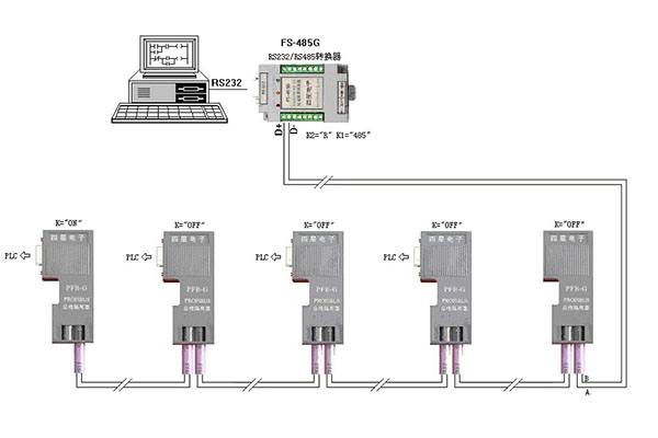 如總線上需掛接變頻器通信,為便于安裝和接線,可將PFB-G換成BH-485G隔離器,將變頻器的RS485口經(jīng)BH-485G隔離后再和總線相連,這種方案可以很好的解決PLC與變頻器通信時的干擾和死機問題!