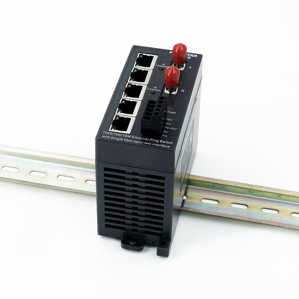 2光5電工業(yè)以太網(wǎng)交換機(jī),單模單纖,千兆環(huán)網(wǎng)。