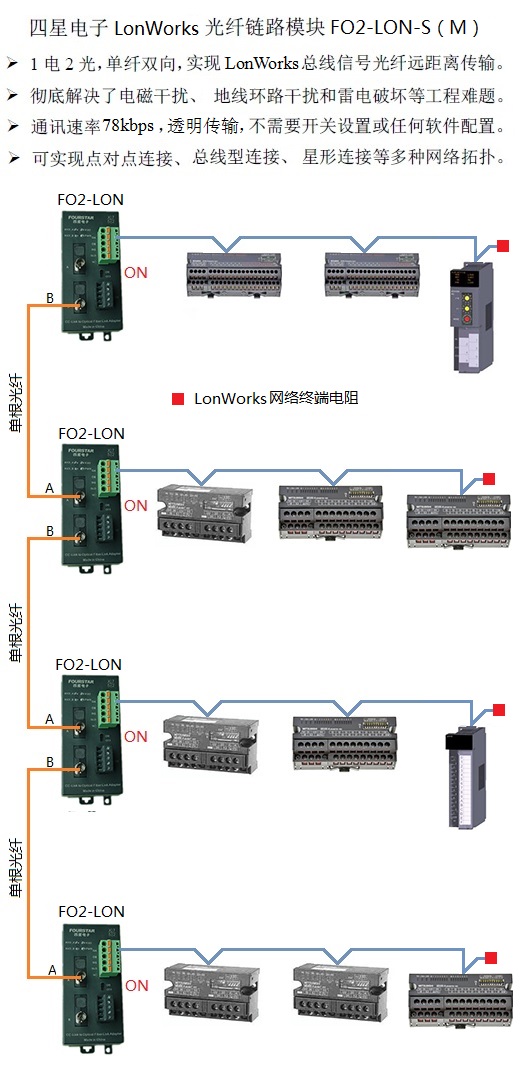 LonWorks光纖適配器,1電2光,多模單纖。